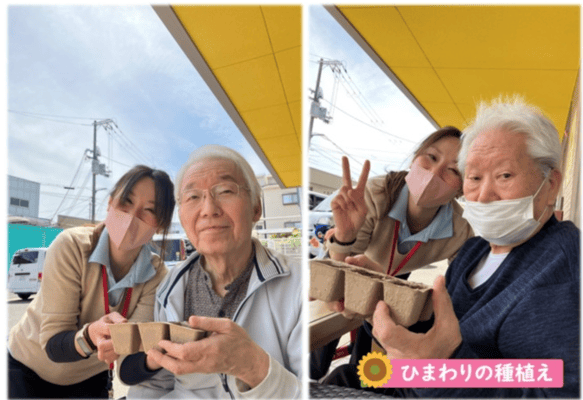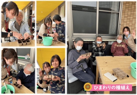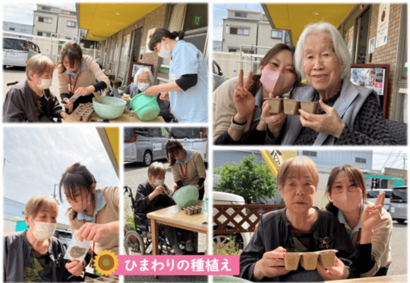 SOMPOケア 門真 光の森デイサービス さんの在宅デイサーボスの園芸活動で、はりかのひまわりを植えました。