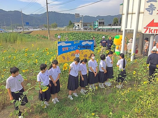 兵庫県太子町の太田小学校では新3年生が未来を見据えた町を変えていく取り組みを行っています。太子町の町花である向日葵が町で見かけない事を憂い、自分たちで育てたひまわりを町のランドマークへ提供し、ひまわりに託したメッセージを各所でPR。さらには町のイベントである音楽祭で自作(作詞作曲)の歌を披露するなど年間を通じて自分たちの町の未来を創る取り組みを実施しました。