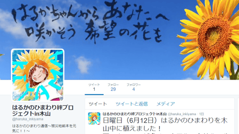 — はるかのひまわり絆プロジェクトin木山 (@haruka_inkiyama) 2016年6月19日