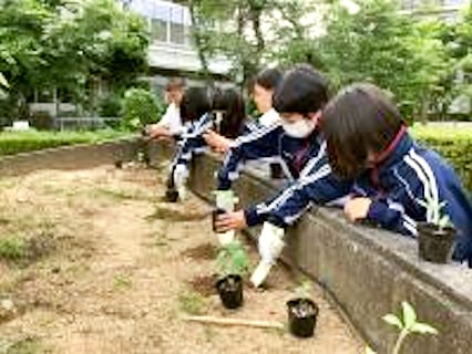 今年も「はるかのひまわり」絆プロジェクトを実施します。東日本大震災を機に藤陽中の地域の方から譲り受けたもので、毎年この「ひまわり」から種を取り、今年で13年も「ひまわりの命」をつないでいます。保健環境委員さんが中心となって定植してくれました。これから成長するのが楽しみです。
