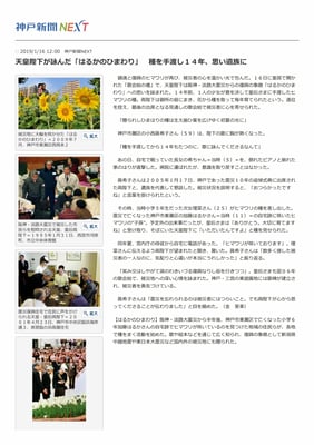 阪神淡路大震災の10周年行事で来神された天皇陛下に、震災御遺族である少女が「はるかのひまわりの種」を謹呈され、陛下は皇居内で毎年大切に育てられた。 ~神戸新聞NEXTより