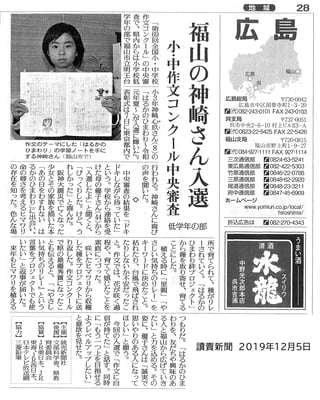 なんと!第69回全国小・中学校作文コンクールに応募され広島県の最優秀賞を受賞されました。